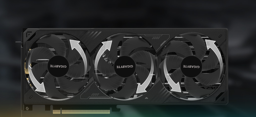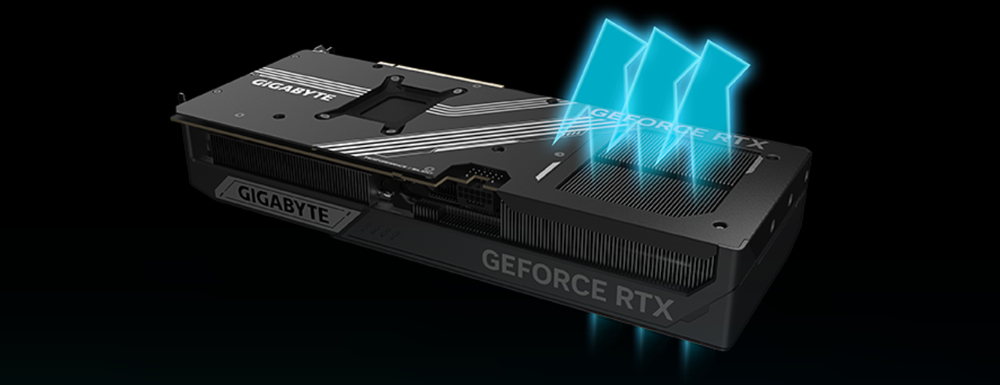 Система охлаждения WINDFORCE обеспечивает исключительную тепловую производительность благодаря сочетанию передовых технологий. Она оснащена теплопроводящим гелем серверного класса, инновационными вентиляторами Hawk с попеременным вращением, композитными медными тепловыми трубками, медной пластиной, активными 3D-вентиляторами и экранным охлаждением.