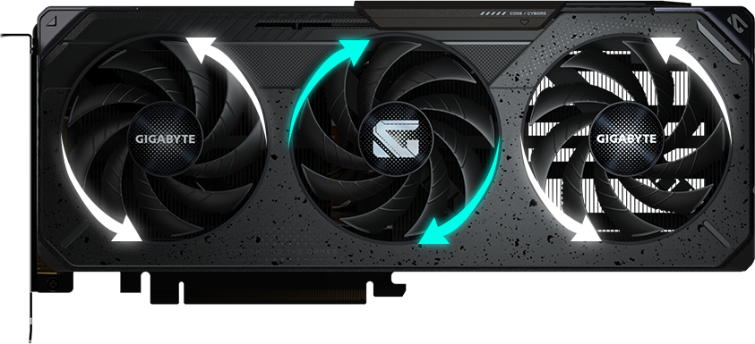 Система охлаждения WINDFORCE обеспечивает исключительную тепловую эффективность благодаря сочетанию передовых технологий. Она оснащена теплопроводящим гелем серверного класса, инновационными вентиляторами Hawk с попеременным вращением, композитными медными тепловыми трубками, медной пластиной, 3D-вентиляторами и охлаждением экрана.