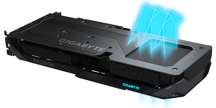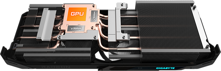 Медная пластина непосредственно соприкасается с графическим процессором и в сочетании с композитными медными тепловыми трубками быстро передает тепло от графического процессора и видеопамяти к радиатору.