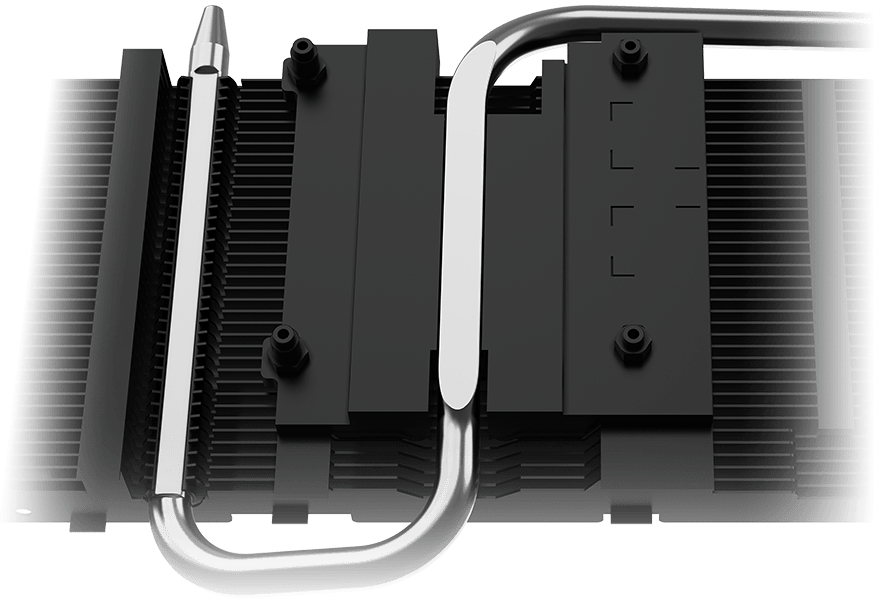 Тепловые трубки быстро отводят тепло от графического процессора и распределяют его по радиатору.