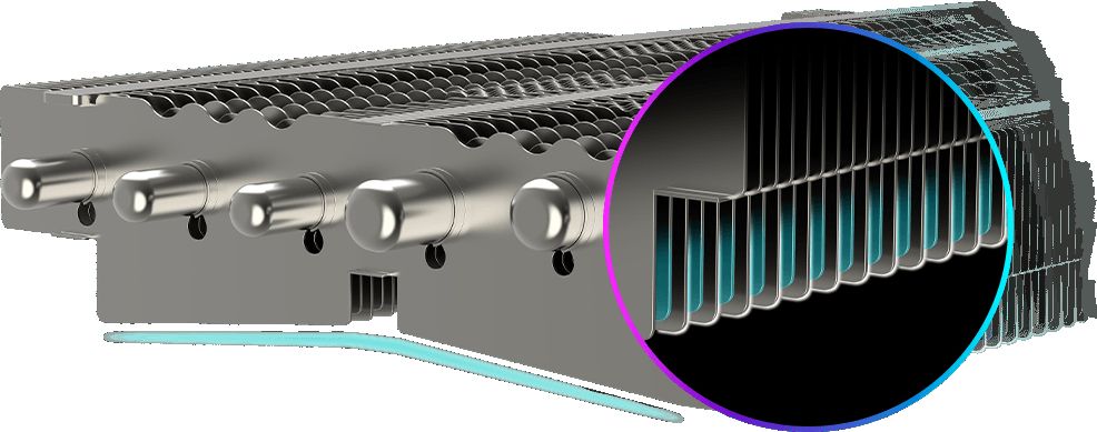 Квадратное сечение тепловых трубок Core Pipes максимизирует контакт с испарительной камерой для лучшего охлаждения.