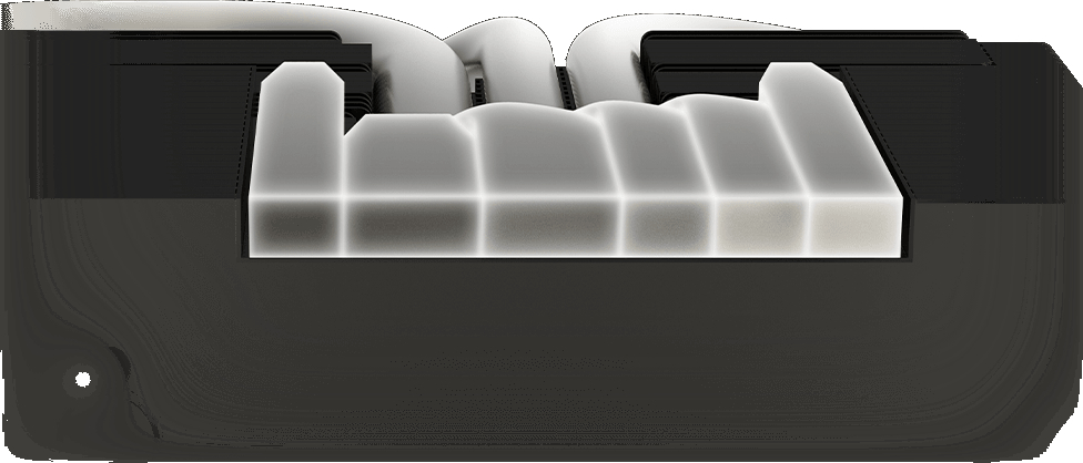 Точно разработанные волнообразные ребра разной высоты улучшают воздушный поток, уменьшают турбулентность и шум.