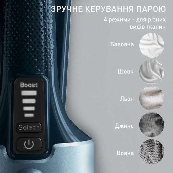 Постоянная подача пара для легкого использования, 4 режима - для любых тканей и комфортного ухода ежедневно.