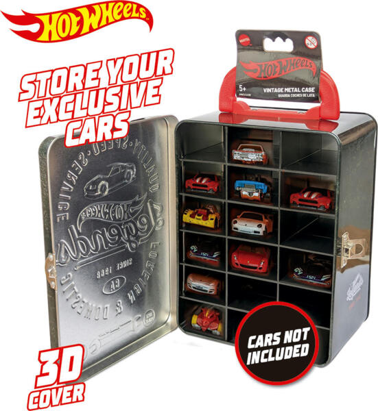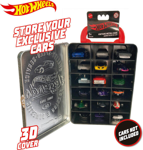 Винтажный контейнер Hot Wheels — стильное и практичное хранилище для вашей коллекции машинок. Металлический кейс черного цвета с ретро-дизайном вмещает до 18 автомобилей и имеет удобную ручку для транспортировки. Благодаря внутренним ячейкам машинки всегда будут в порядке. Идеально для коллекционеров и фанатов классического стиля! Машинки продаются отдельно.