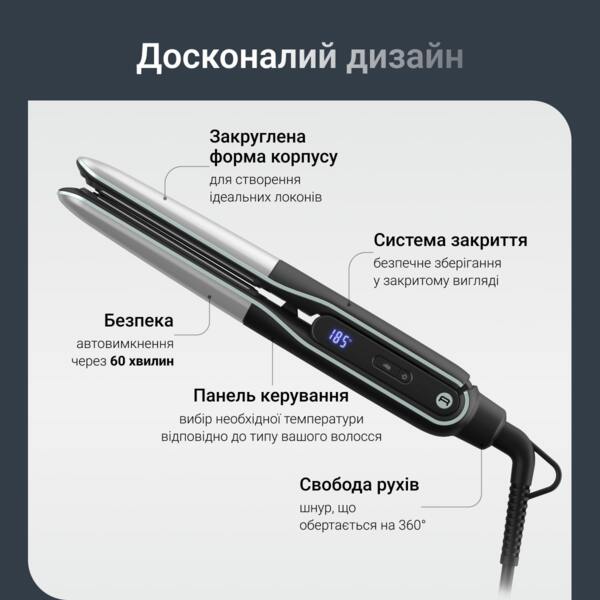 Добрий день, Вероніко! У випрямлячі є 6 температурних режимів від 150 до 230 °C: від делікатного догляду до інтенсивного випрямлення. Ви можете самостійно обирати найкращий для Вас.