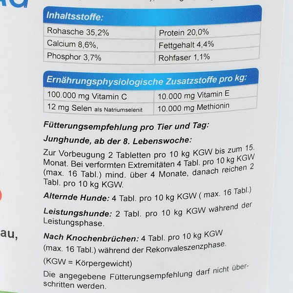 - щенкам с признаками нарушения минерального обмена по 4 таблетке на 10 кг веса минимум в течение 4 месяцев, затем по 2 таблетке на 10 кг веса