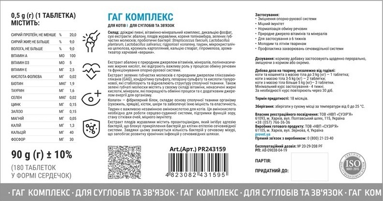 - Витамины для котов ProVET Profiline ГАГ комплекс для суставов и связок 180 табл