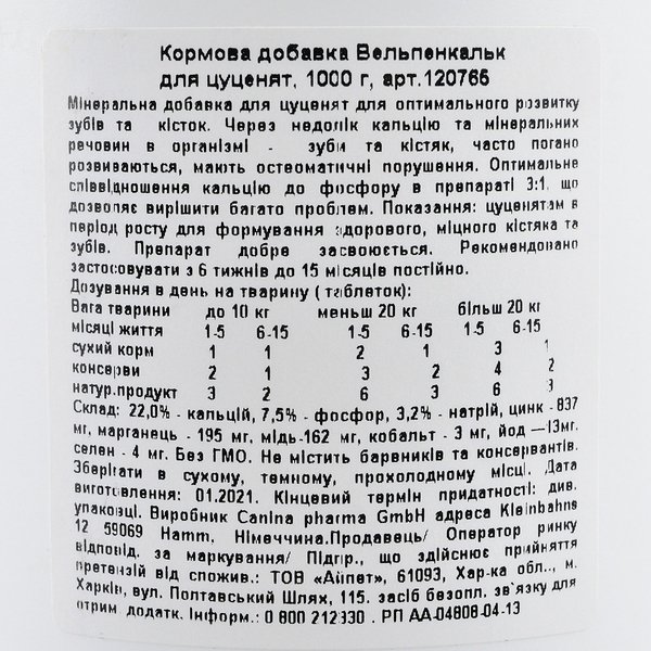 Витамины для щенков Canina Welpenkalk 1000 г 1000 таблеток