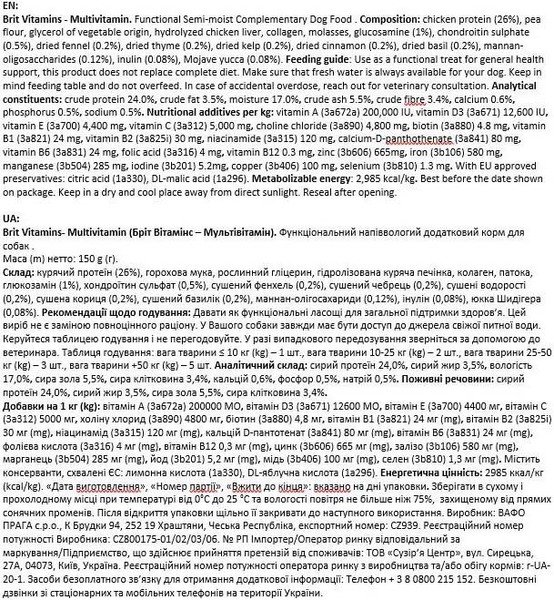 - Витамины для собак Brit Vitamins Multivitamin для здоровья, 150 г