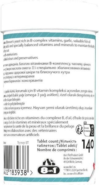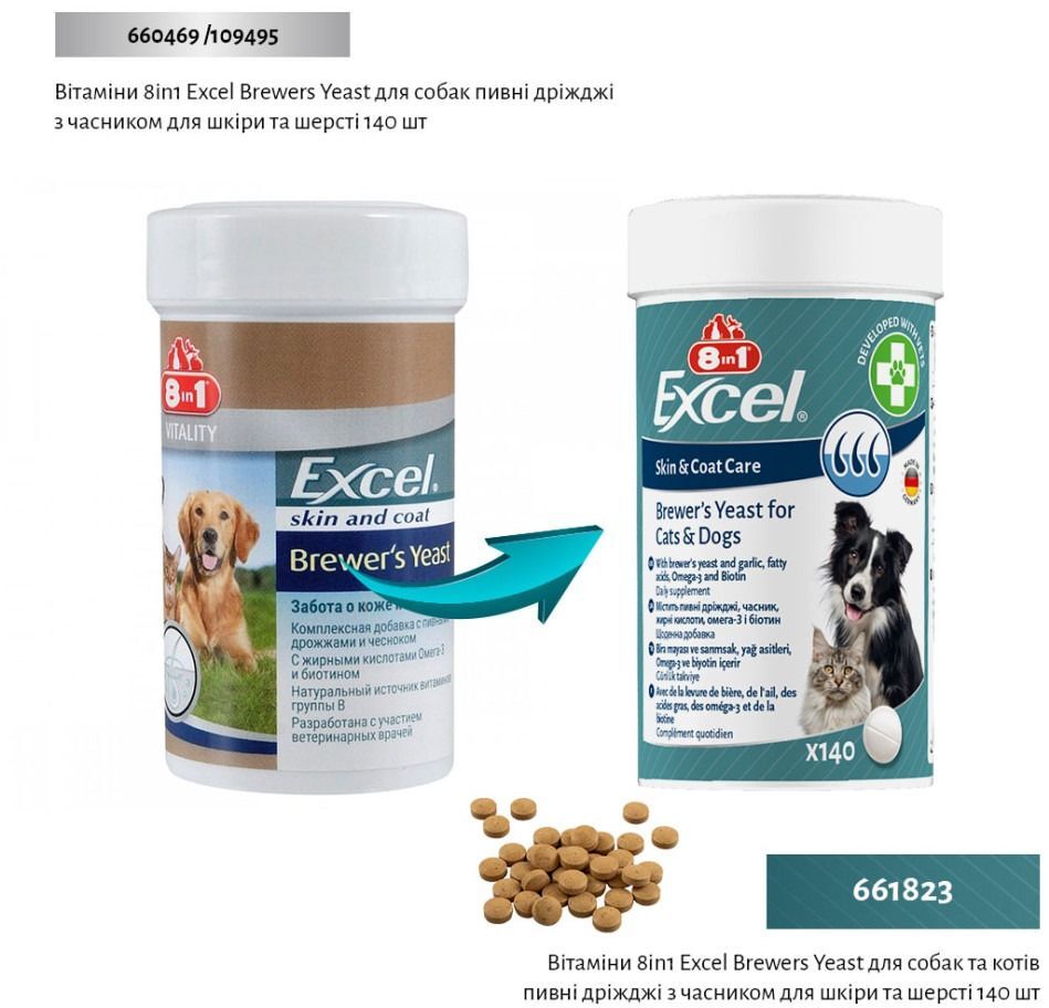 Витамины для собак и котов 8in1 Excel Brewers Yeast пивные дрожжи с чесноком для кожи и шерсти 140 шт