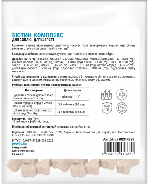 - Витамины Provet ProfiLine для собак Биотин комплекс для шерсти 10 табл