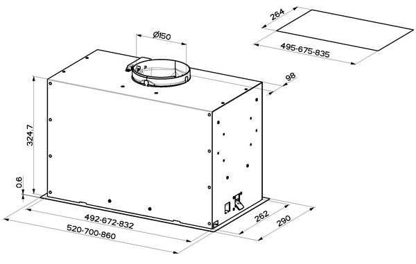 | Дополнительно | Полновстраиваемые вытяжки шириной 70 см, Вытяжки металлические |