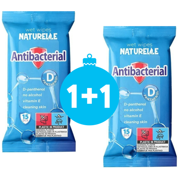 Антибактериальные влажные салфетки Naturelle с Д-пантенолом 15 шт
