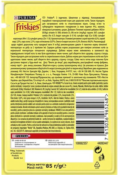 Влажный корм для котов Friskies кусочки в подливе с индейкой 85 г
