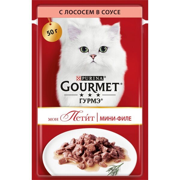 - Влажный корм для котов Gourmet Mon Petit со вкусом лосося 50 г