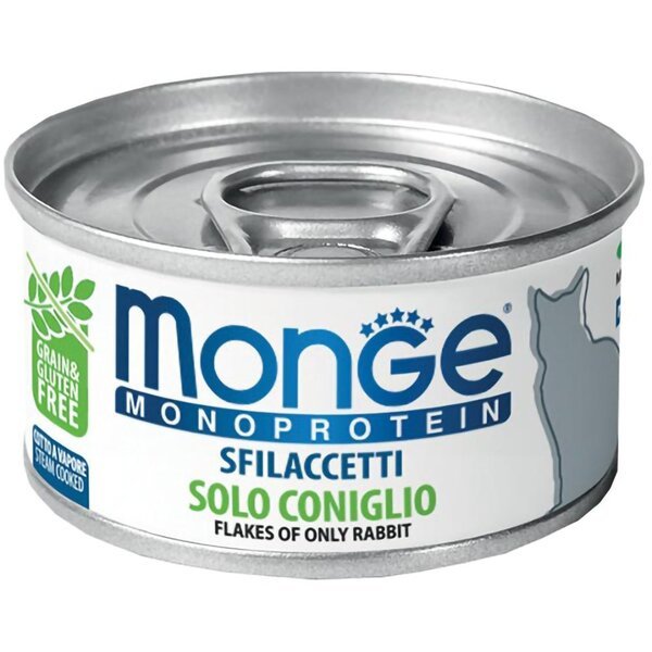 - Влажный корм для кошек Monge Cat Monoprotein мясные хлопья кролик, 80 г