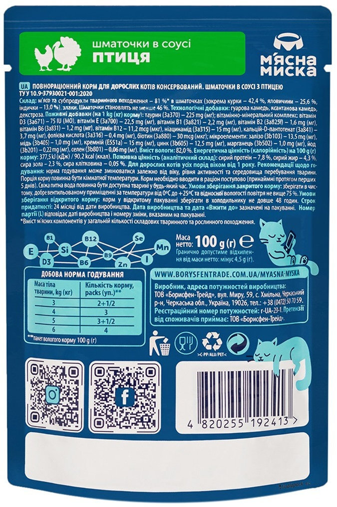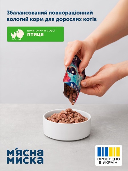 - Влажный корм для котов Мясная Миска с птицей 100 г