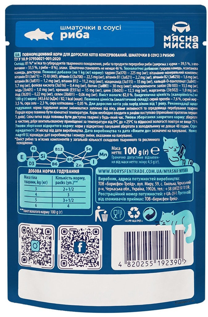 - Влажный корм для котов Мясная Миска с рыбой 100 г