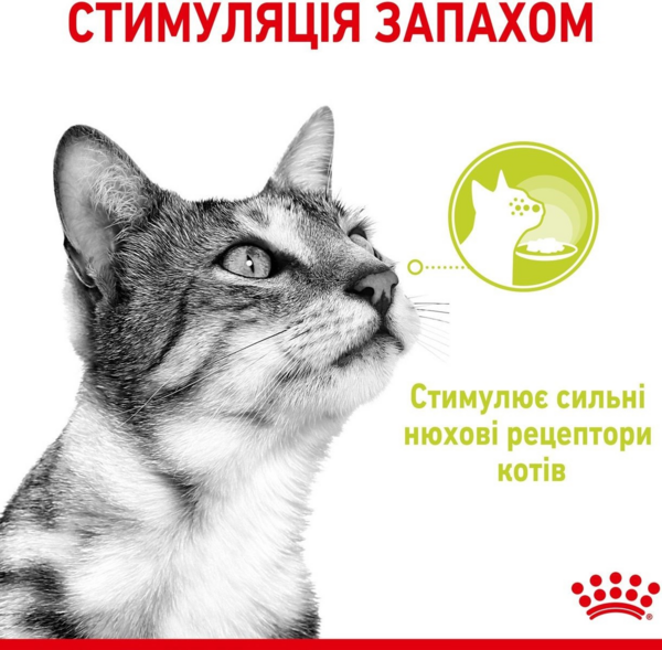 Полнорационный влажный корм для взрослых кошек, стимулирующий сильные обонятельные рецепторы у кошек.