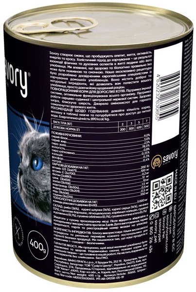Влажный корм для котов Savory Adult для привередливых котов Рыба 400г