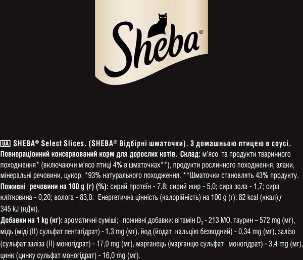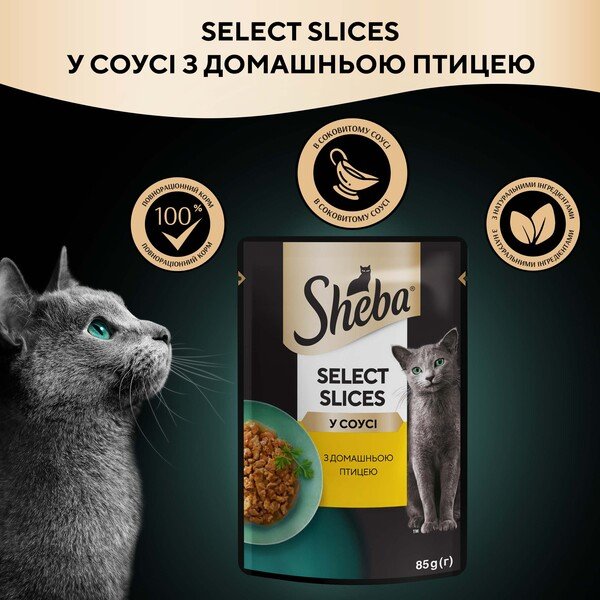 Влажный корм для кошек Sheba с домашней птицей в соусе 85г
