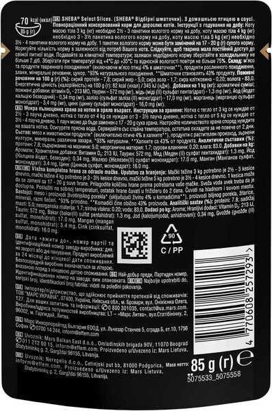 Похожие товары Влажный корм для кошек Sheba с домашней птицей в соусе 85г