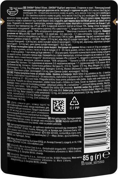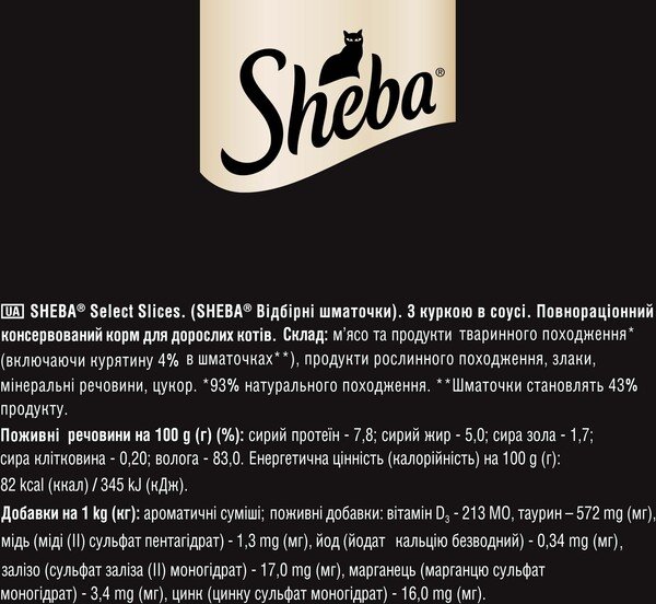Похожие товары Влажный корм для кошек Sheba с курицей в соусе 85г