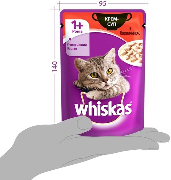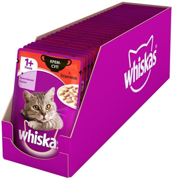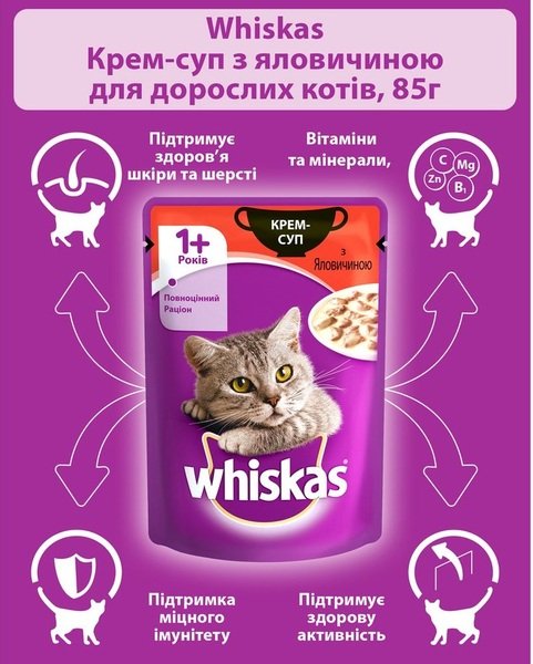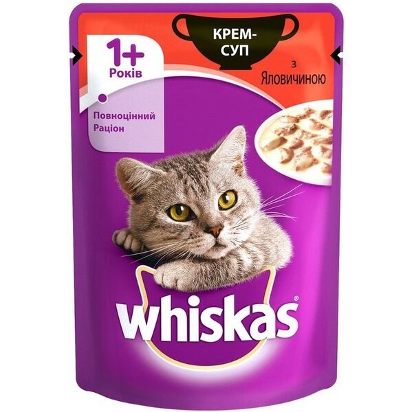 - Влажный корм для котов Whiskas крем-суп, с говядиной, 85 г