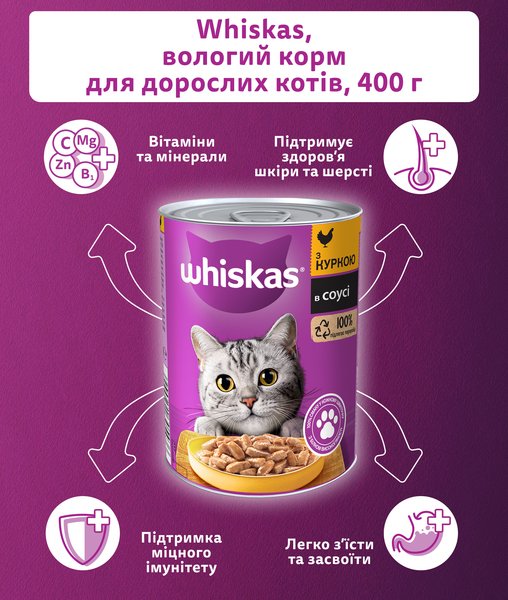 - Влажный корм для котов Whiskas консерва курица 400г