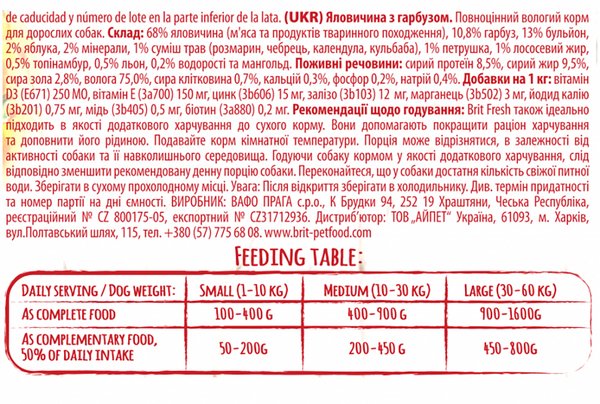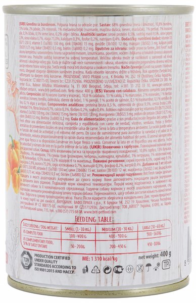 Влажный корм для собак Brit Fresh Beef/Pumpkin 400г говядина,тыква