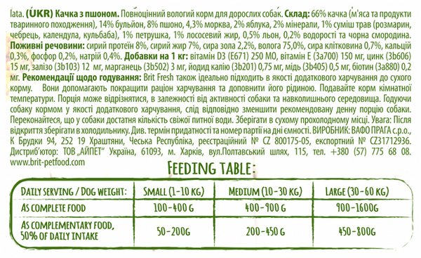 Влажный корм для собак Brit Fresh Duck/Millet 400г утка,пшено