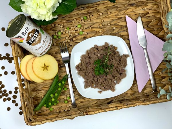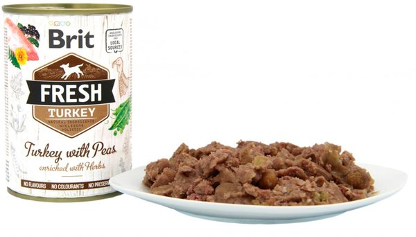 - Влажный корм для собак Brit Fresh Turkey/Peas 400г индейка, горошек