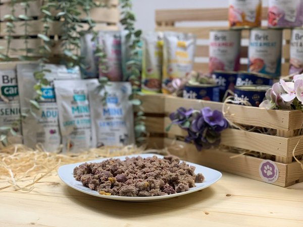 Brit Fresh предлагает деликатесное, комплексное и сбалансированное питание с мясом, потрошками, овощами, фруктами и зеленью из местных источников. Изготовлено из свежего мяса, естественно содержит в себе мясной сок с веществами, которые придают неповторимые вкусовые качества продукту. Полноценный корм для собак.