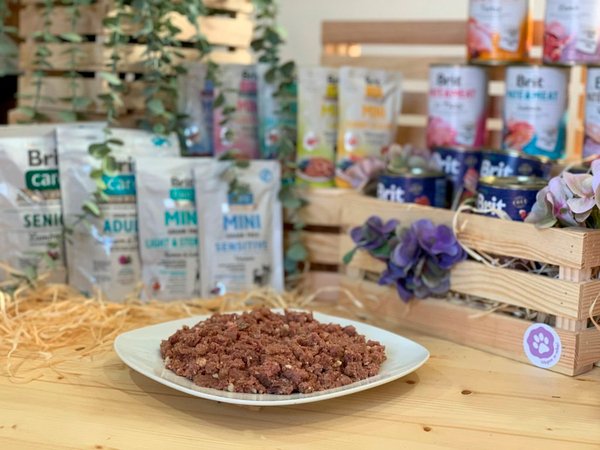 Brit Fresh предлагает деликатесное, комплексное и сбалансированное питание с мясом, потрошками, овощами, фруктами и зеленью из местных источников. Изготовлен из свежего мяса с натуральным мясным соком, содержащим в себе вещества, которые сохраняют уникальные вкусовые качества продукта. Комплексный корм для собак.