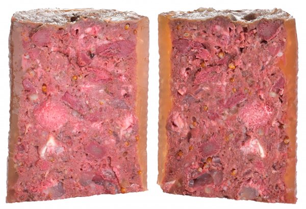 45% телятина, 24% индюк, 16% бульон, 7,3% просо, 2% яблоки, 2% минералы, 1% смесь трав (розмарин, тимьян, календула, одуванчик), 1% лососевое масло, 1% петрушка, 0,5% семя льна, 0,2% водоросли и мангольд.