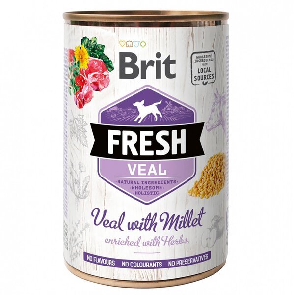- Влажный корм для собак Brit Fresh Veal/Millet 400г телятина,пшено