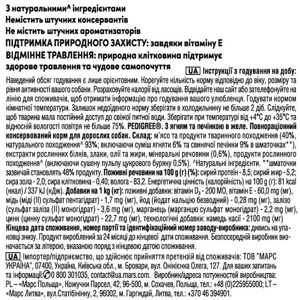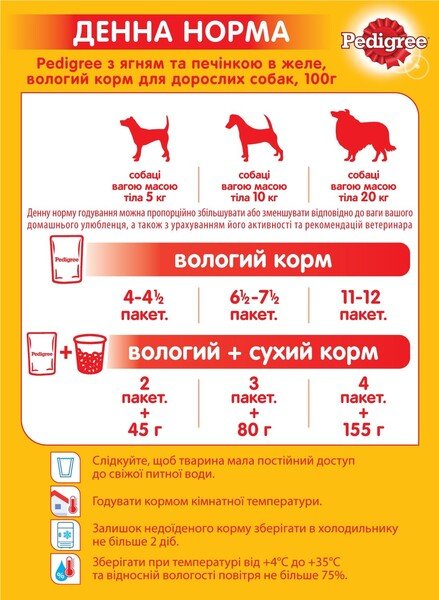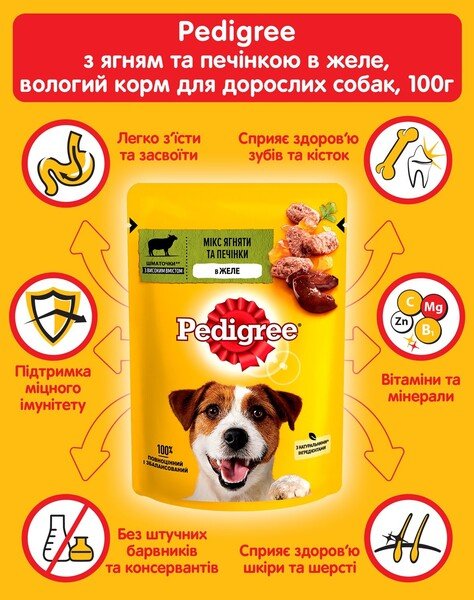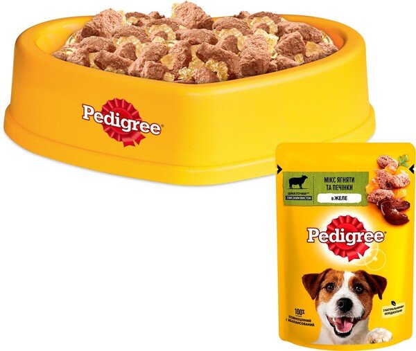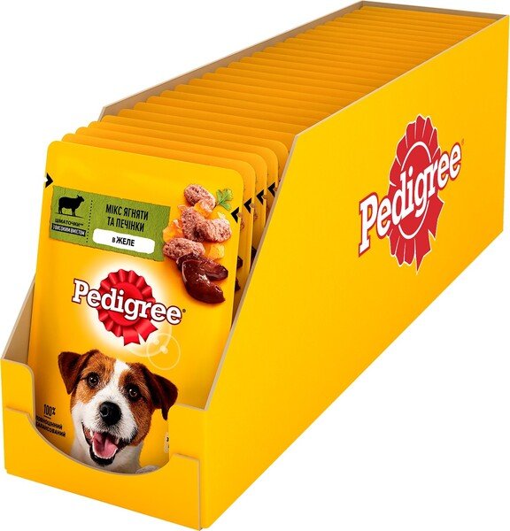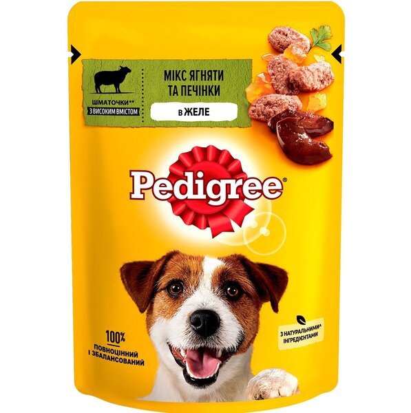 Влажный корм для собак Pedigree Микс ягненка и печени в желе 100г