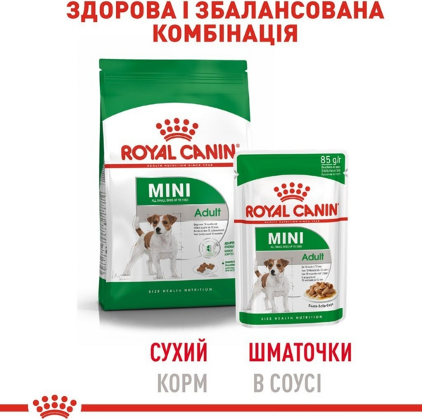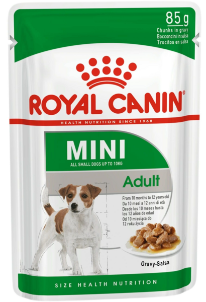 Royal Canin Mini Adult - полнорационный влажный корм для взрослых собак малых размеров в возрасте от 10 месяцев до 12 лет.