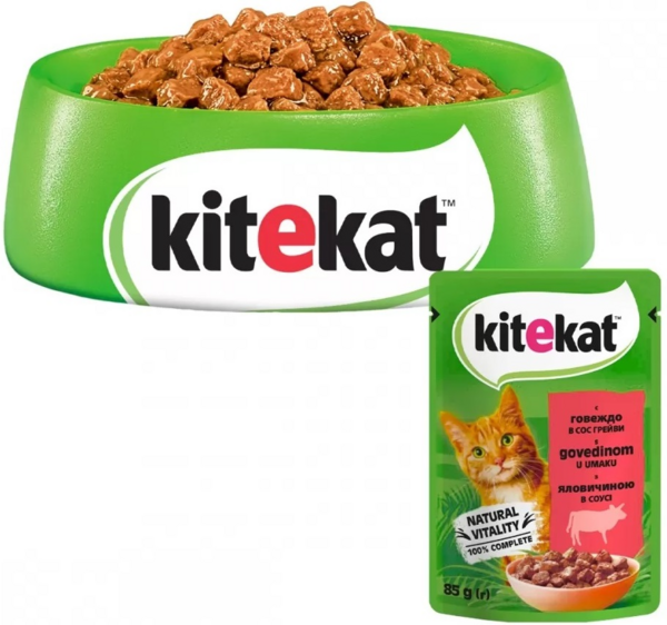 - Влажный корм для взрослых кошек Kitekat с говядиной в соусе 85г