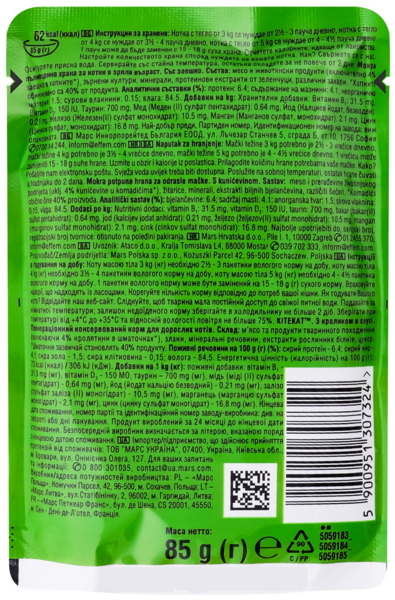 | Состав | Мясо и субпродукты (включая кролик минимум 4%), злаки, минеральные вещества |