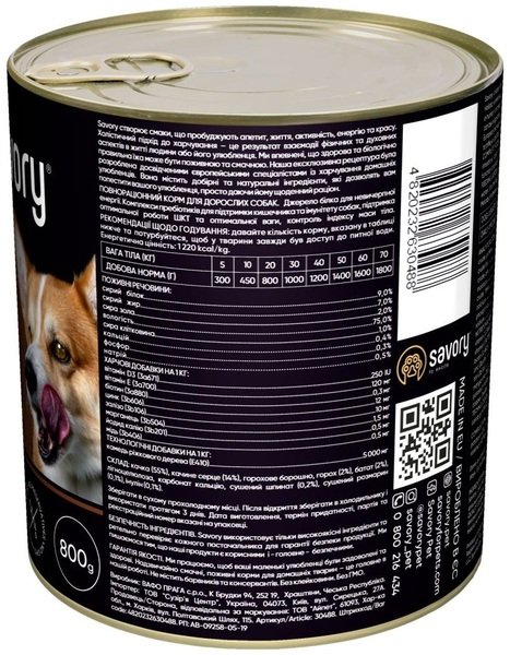 - Влажный корм для взрослых собак Savoryс уткой 800г