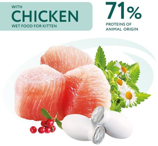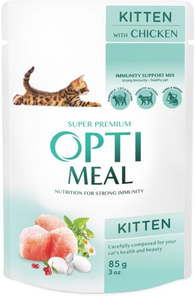 Optimeal Kitten Chicken - это влажный рацион для котят с курицей, который является идеальным выбором для гармоничного развития вашего любимца
