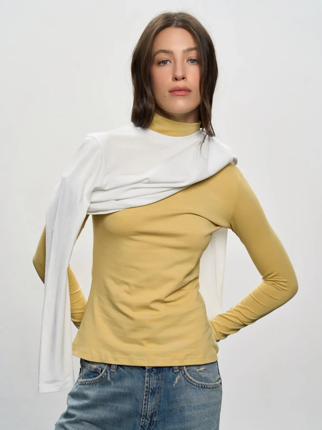 - Водолазка отлично тянется и прилегает к телу, подчеркивая фигуру и обеспечивая свободу движений;
