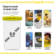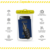 Capsule Waterproof Case достаточно вместителен, что делает его универсальным для всех типов смартфонов с диагональю до 6.9 дюймов. А также чехол не только защитит ваше устройство, но и ключи, деньги, документы или другие важные вещи.