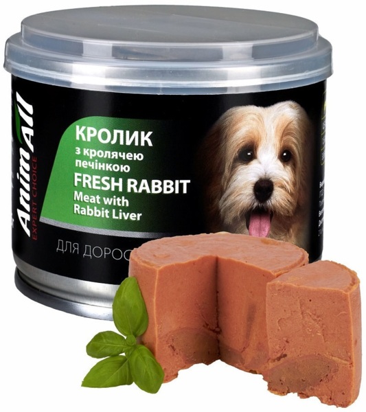 - Влажный корм для собак AnimAll с кроликом и кроличьей печенью 195 г
