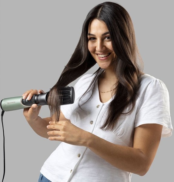 Вращающийся аэростайлер Botanicals сушит и укладывает волосы в одном приборе, давая вам свободу и гибкость, чтобы каждый день делать укладку по своему вкусу. В усовершенствованном керамическом покрытии используются природные элементы, придающие красоту: экстракт алоэ вера, жожоба и розы для придания блеска, а мягкий температурный режим BotaniCare от Remington защищает и ухаживает за волосами, делая укладку при более низкой температуре. Щетка с разнонаправленным вращением для укладки в обоих направлениях, а также 50-миллиметровая круглая щетка с мягкой щетиной и жесткая лопастная щетка, чтобы вы могли мгновенно перейти от упругих локонов к супер-гладким. Каким бы ни был ваш образ, ионное кондиционирование сдерживает пушение и разлетание волос, чтобы каждый раз получать результат, пригодный для селфи.