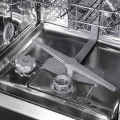 Электронное управление посудомоечной машиной интуитивно понятное и легкое. Достаточно нажать кнопку на скрытом LED-дисплее и устройство начнет тихую работу (49 дБ(А)). Контроль работы отслеживают с помощью индикатора, который подскажет о наличии моющего средства и соли, а также завершения стирки (на дисплее будет «0»). Система защиты от переливания и протечек гарантирует долговечность и надежность посудомоечной машины.