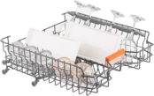 Разместить различную по размеру и форме посуду для мытья можно благодаря наличию 3-й корзины, регулируемой верхней корзины, 2-м полкам для кружек, 2-м раскладным полкам в верхней и 4 в нижней корзинах, а также универсальной съемной корзине для столовых приборов. Эффективное расположение обуславливает качественное мытье и сушку, экономит воду и электроэнергию и делает невозможным поломку устройства. При необходимости можно воспользоваться половинной загрузкой с одним режимом (Eco Wash).