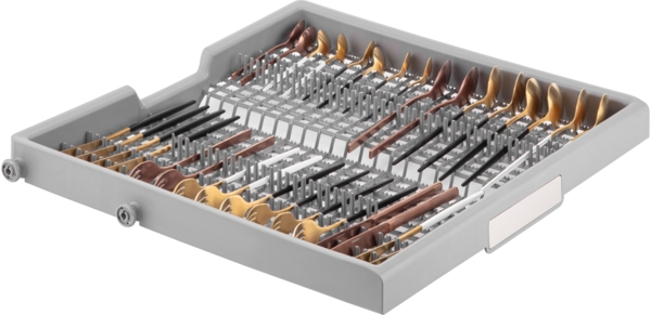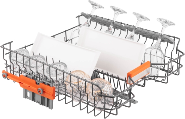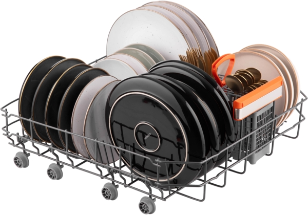 Продуманная система загрузки с адаптивными съемными и раскладными модулями обеспечивает эффективное использование пространства. С двухуровневой регулируемой верхней корзиной, 2 полками для кружек, 2 раскладными полками в верхней и 4 в нижней корзинах, универсальной съемной корзиной для столовых приборов можно вымыть много посуды, значительно сокращая затраты ресурсов и получая при этом хорошие результаты мытья.