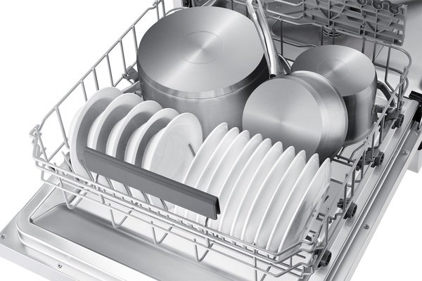 Легкое размещение посуды разного типа и размера. Функция Auto Adjust позволяет одним касанием переместить верхнюю корзину вверх или вниз. Освободив больше места в нижней корзине, ее можно использовать для размещения посуды разного размера и формы, в том числе высоких кастрюль, широких подносов и больших тарелок.
